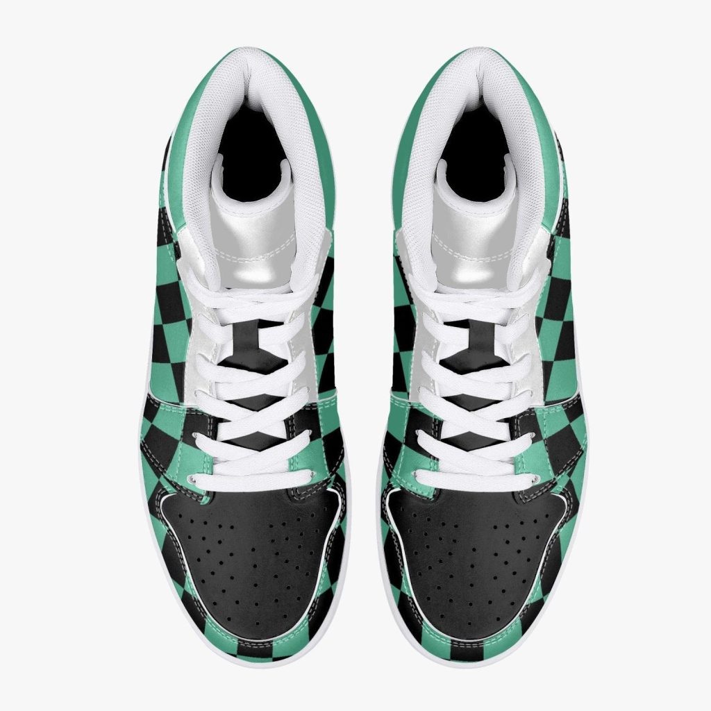 Green Square Black Pattern Mid 1 Basketball Shoes