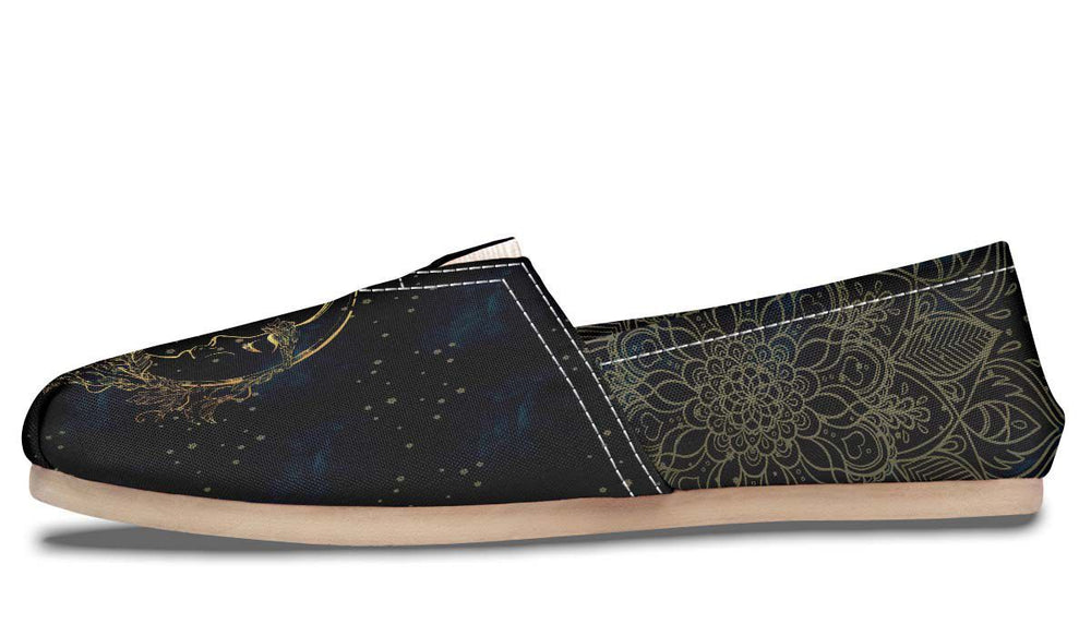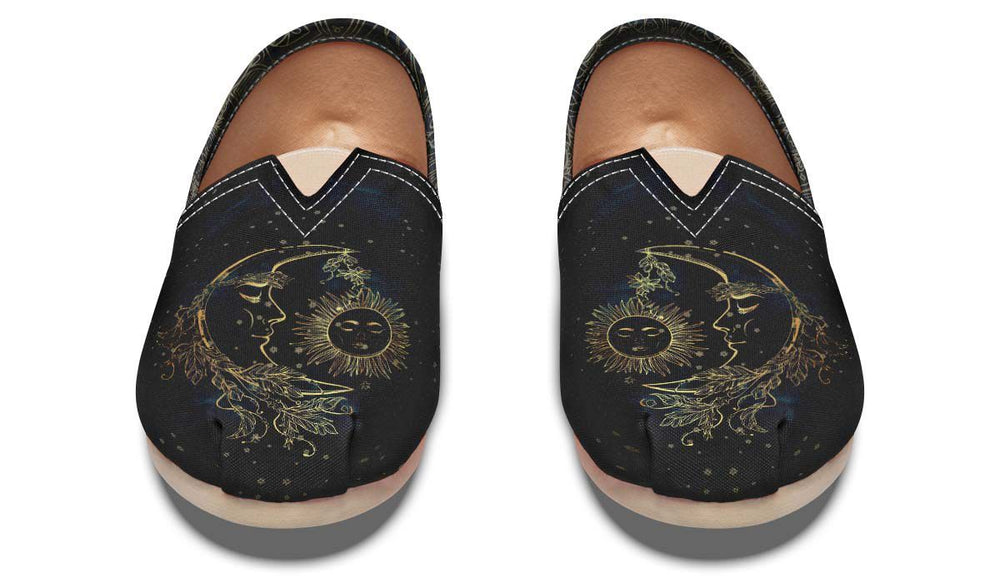 Ideal for yoga practice, meditation sessions, or casual wear, these shoes keep you connected to your inner calm. The sun symbolizes vitality and growth, while the moon represents intuition and reflection. Each step in these shoes is a reminder of your commitment to inner peace and spiritual well-being.