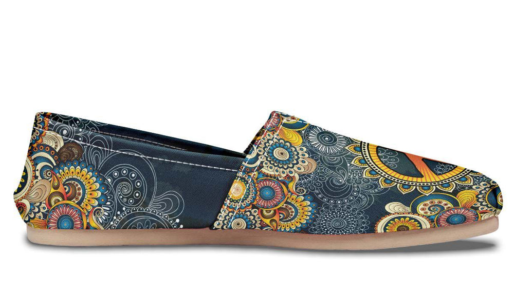 Ideal for yoga practice, meditation sessions, or everyday wear, these shoes keep you connected to your inner calm. The sunflower motifs symbolize positivity and growth, while the mandala patterns represent spiritual unity and balance. Each step in these shoes is a reminder of your commitment to inner peace and spiritual well-being.